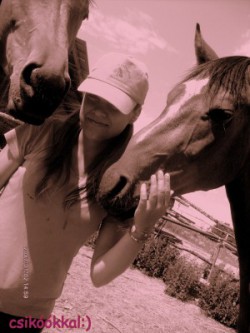 na meg reggel most is lassuzott a Dorottya..jaa,és le is lettünk cseszve,mert locsolkodtunk:'D hátöö..ja.:'D aztán elvoltunk, mint a befőtt. Volt olyan is hogy eljátszottuk a Gábort, és persze az ostorral is nagyon elvoltunk:$$ aztán nagyon sokat paciztunk.>_< és mindig éhségben szenvedtünk, legalábbis én.:DD Pénteken volt Dorottya utolsó napja, hogy velünk van, meg tábor,mert jövő héten gyakorlatra megy.:c ráadásul nem is túl jól váltunk el...az utóbbi két napba elég külön volt tőlünk a Dorival..:| nemtudjuk mi se miért.:oo aztán ugye a csapatba bele is kotnyeleskedtek.:S voltunk lenn a csikóknál is.:33 ez a hét telt el eddig a leggyorsabban ( Szerintem )..:| és ez tökjó hét volt, most eddig ez a legjobb..a Dori pénteken se lovagolt, eléggé összezördültünk,de végülis kibékültünk, valamilyen szinten.. jövő héten is megyünk, azt hiszem már csak 3an.. ( kevés az esély hogy négyen ).rossz, hogy ez a tökjó csapat ( igy öten ) összejött ebben a kettő hétben, és most kiválik és elválik..:| igazán jó volt, nagyon jó! jövő héten necces lesz a tábor... és egyben az utolsó..mert eddig ugyvolt,hogy akkor nem lesz több...de ez már tényleg az utolsó lesz..hát nemtudom a következő hét után mi lesz.:| mert hogy furcsa lesz, hogy nem megyek most olyan sűrűn és nem találkozunk annyira sűrűn a lányokkal...:S meg persze akkor jön az unalom és a hiányérzet, meg a Szedreshez való 'honvágy'.:| és a jövő hét hétfőtől pedig már le is telt egy kerek egész szép hónap a nyárból.:S zsinorba szedres.*_* jóó is.:D eddig 4 hét szedresben...: ) na mindegy.. aztán voltak dolgok amik felkavartak... naa hát megpróbálom legyőzni, nem gondolni rá, kikerülni és nem szomorkodni, meg hasonlók..:) a lovak között, újra önmagam vagyok, mégha máskor nem is.:):|