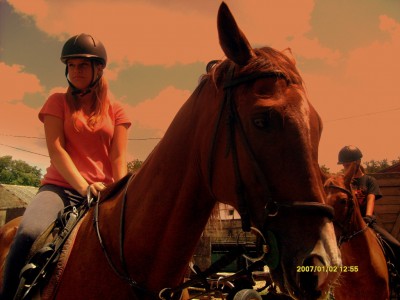 szóval ebben a négy szép napba..mert igen, tényleg szépek voltak..a táborozókat megkedveltük, reggelente nyergelgettünk meg kantároztunk is.:33 a Szandiék szokás szerint ( még mindig ) késnek, velünk ellentétbe.. aztán most is visszahallunk dolgokat amiket másook mondanak rólunk.. azt hiszem most már nem lesz teljes a 'lovasudvarház szedres' Laci bácsi nélkül:S ugyanis "elment" ( szebben fogalmazva ) .. hát elég furcsa, egy nap múlva ( hogy már nem dolgozik itt ) már álitja, hogy lesz új munka helye..vagyis már megy is az új munkahelyére..na ezt igen kétlem.főleg hogy nem sokára nyugdijba kéne mennie.:S